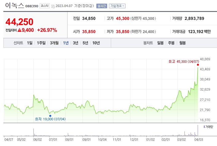 최근 2차 전지의 양극재 관련 종목들이 주춤하고 있는 사이에 최근에 실리콘 음극재 관련주들이 관심을 받고 있습니다. 그래서 오늘은 2차 전지 관련주들에 비해 상대적으로 오르지 않았다는 기대감과 '실리콘 음극재'의 매출에 대한 기대감이 합쳐지면서 상승폭이 컸습니다.