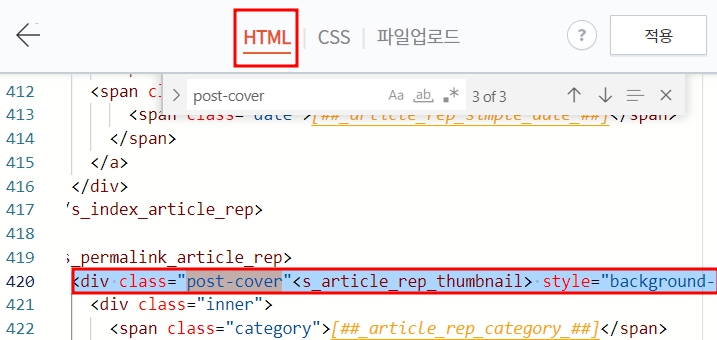 ▶변경 후:<div class="post-cover"<s_article_rep_thumbnail> style="background-image:url(none)"</s_article_rep_thumbnail>>