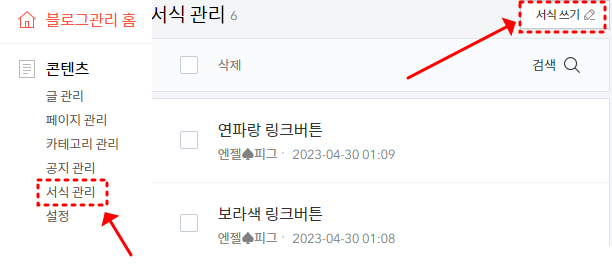 ▶ 티스토리 관리홈 < 콘텐츠 < 서식관리 < 서식 쓰기