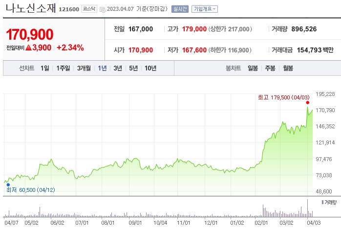 최근 2차 전지의 양극재 관련 종목들이 주춤하고 있는 사이에 최근에 실리콘 음극재 관련주들이 관심을 받고 있습니다. 그래서 오늘은 2차 전지 관련주들에 비해 상대적으로 오르지 않았다는 기대감과 '실리콘 음극재'의 매출에 대한 기대감이 합쳐지면서 상승폭이 컸습니다.