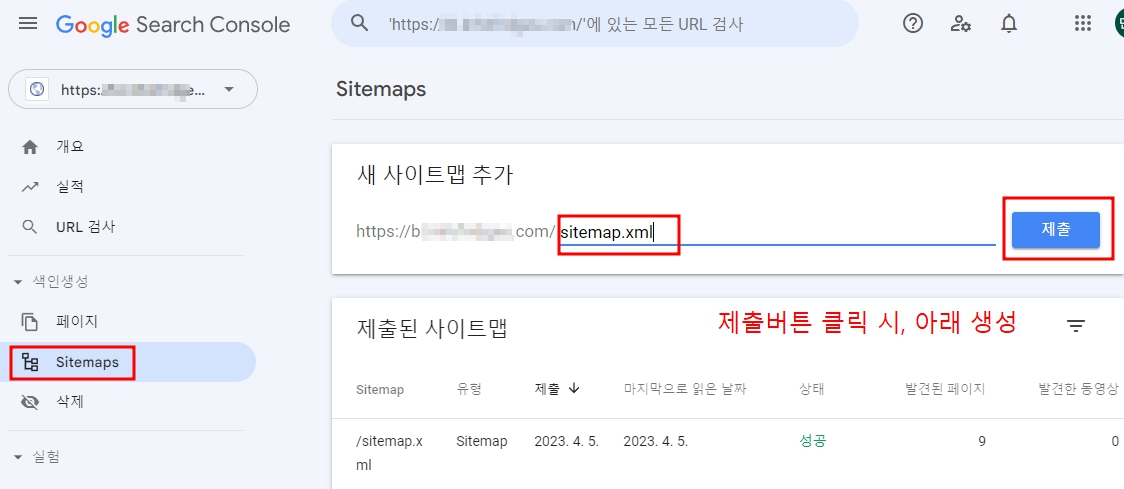 ▶ 바로 아래 제출된 사이트맵에서 결과가 나타납니다.